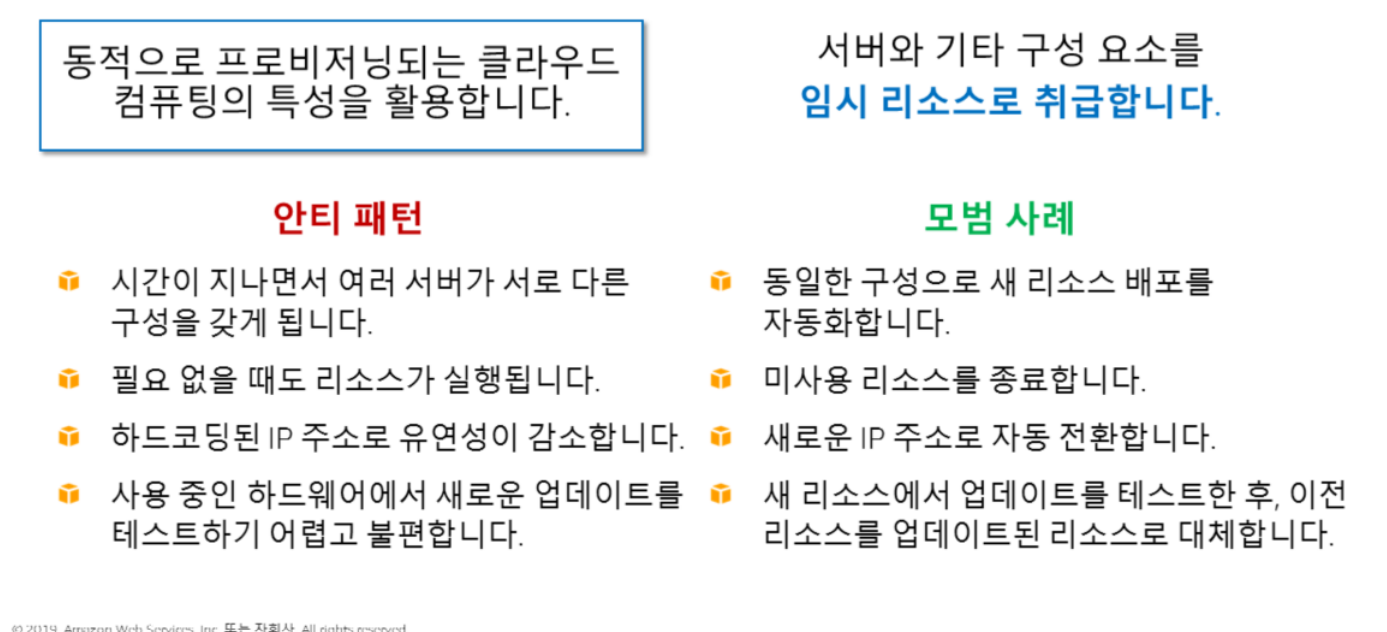 AWS에서 리소스란 --> 매우 간단하게 마이그레이션 가능하다. 따라서 항상 임시 요소라고 생각하고