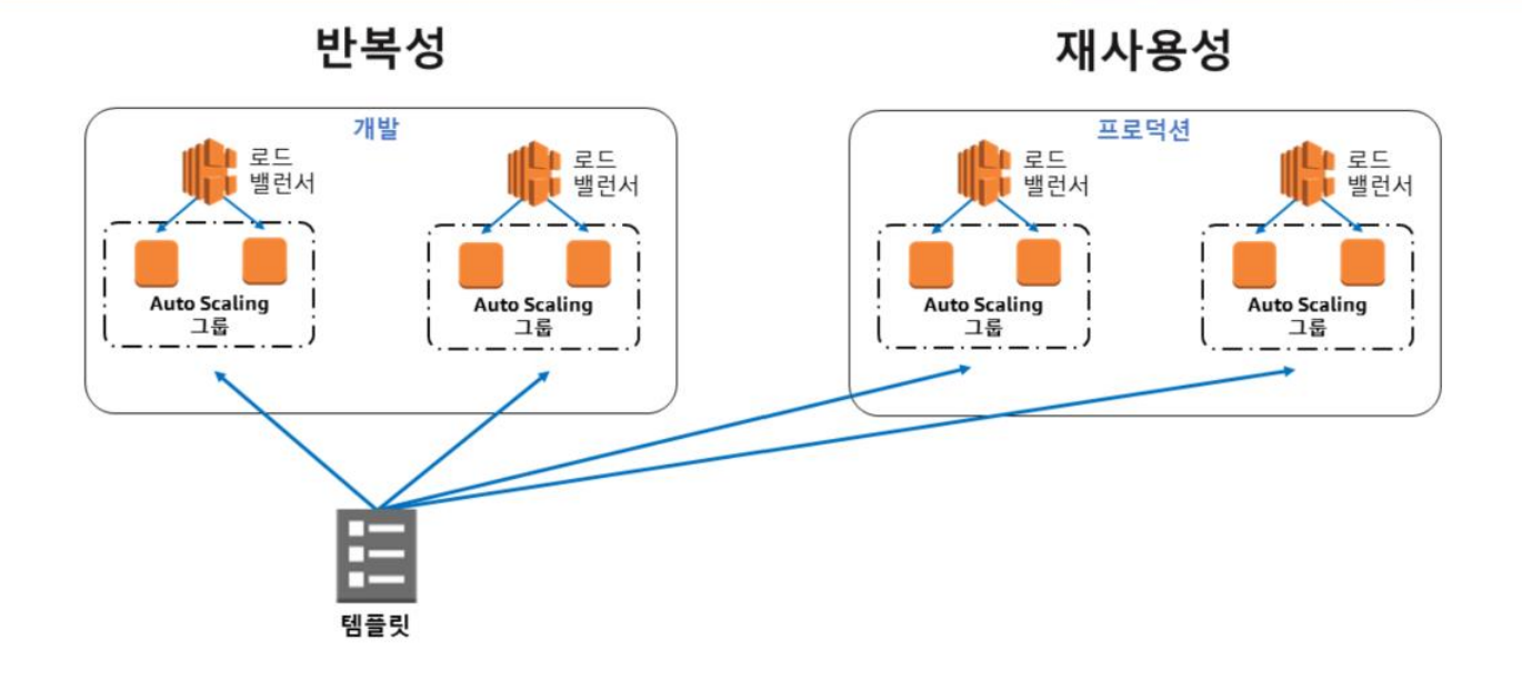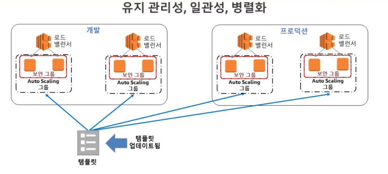 템플릿 하나로 복잡한 동일 환경을 반복 구축할 수 있다.