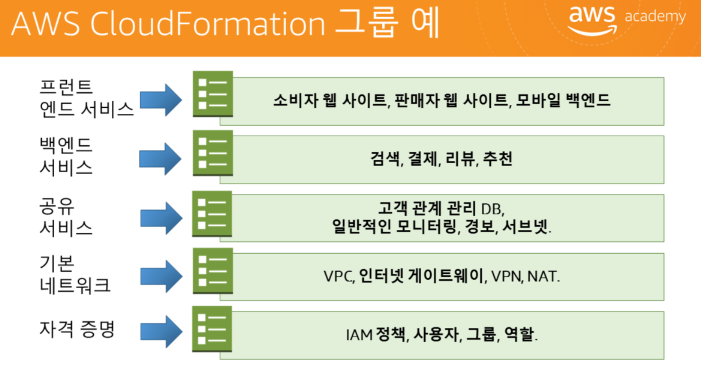 ex) 네트워크 리소스 ==> VPC, 서브넷, 인터넷 게이트웨이, 라우팅 테이블. 네트워크 액세스 제어 목록(ACL)