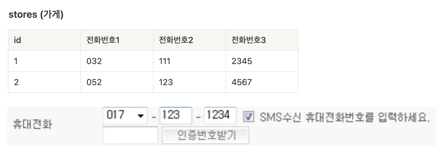 누군가는 전화번호가 하나의 정보라고 생각할 수도 있지만, 누군가한테는 전화번호는 3가지의 정보라고 생각할 수 있다. 둘 다 맞는 말이다. 어떻게 테이블을 설계해야 하는 지는 서비스에 맞게 판단하면 된다. 만약 전화번호의 3가지 정보를 분리해서 따로따로 사용해야 하는 경우가 있다면 두 번째처럼 설계를 해야 한다. 그렇지 않다면 첫 번째처럼 설계를 하면 된다.