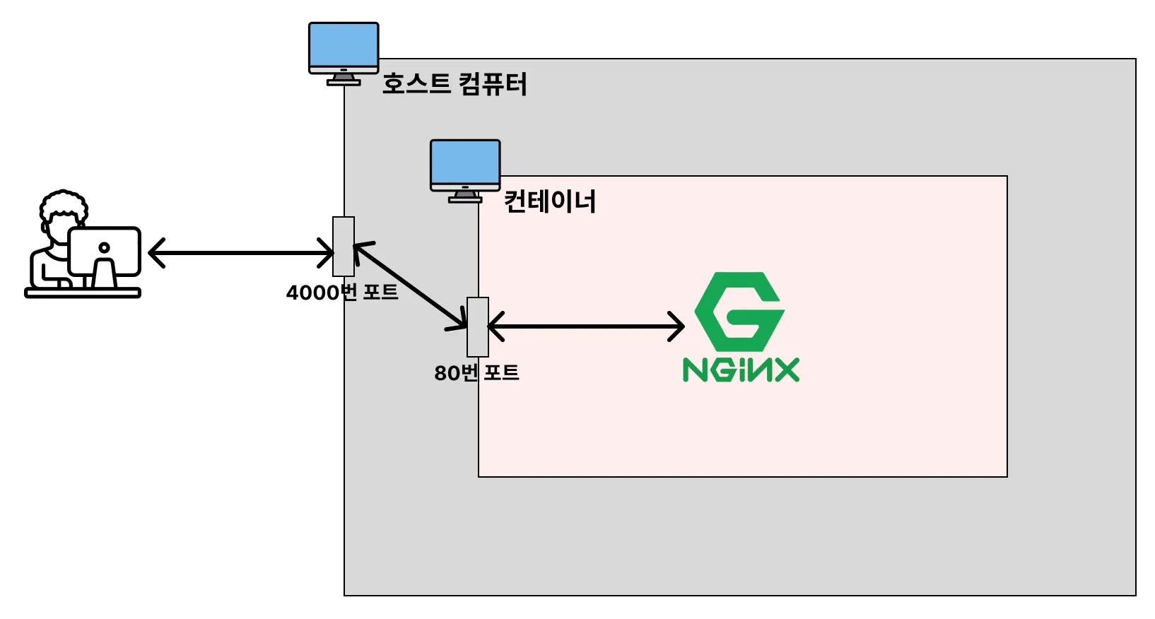 도커를 실행하는 호스트 컴퓨터의 4000포트를 컨테이너의 80번 포트로 연결하도록 설정한다.