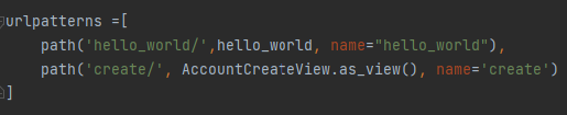 class based view이기 때문에 AccountCreateView.as_view()라고 작성해야 됨