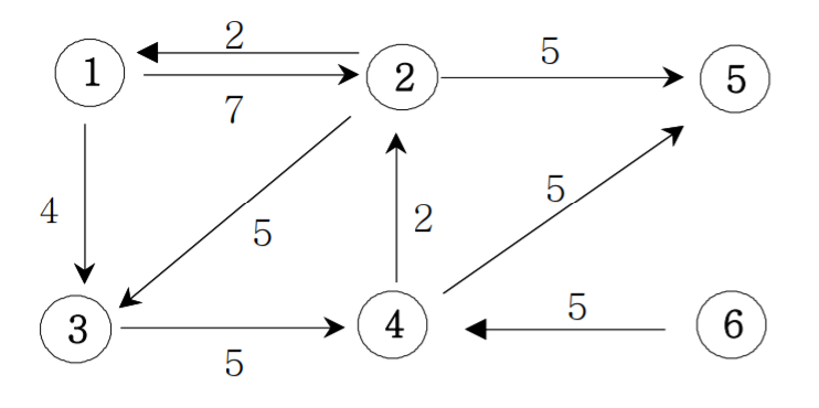 아래 그림과 같은 그래프 정보를 인접행렬로 표현해보세요.