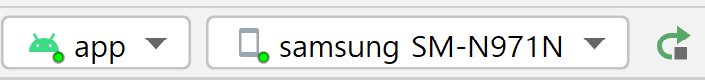 그 후 안드로이드 스튜디오를 실행하여 단말기를 선택하고 run버튼을 누르면 단말기에서 실행이 된다.