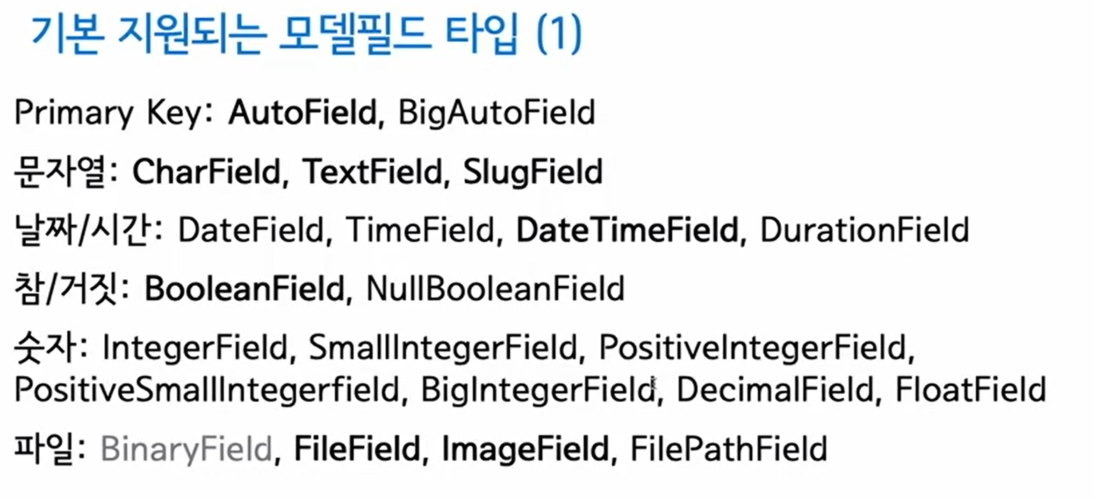 모델 필드들은 DB 필드타입을 반영